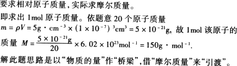 固体仅由一种元素组成,其密度为5 g·cm-3.用X射线研究该固体的结果表明:在棱长为1×10-7 cm的立方体中含有20个原子,则此元素的相对原子质量最接近 | |