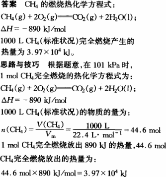 在101 kPa时,1 mol CH4完全燃烧生成CO2和液态H2O,放出890 kJ的热量,写出CH4的燃烧热化学方程式,计算1000 L CH4(标准状况)燃烧后所产生的热量为多少?