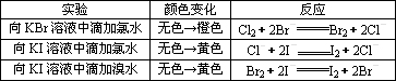 甲、乙、丙三种溶液各含有一种X-(X-为Cl-、Br-或I-)离子,向甲中加淀粉溶液和新制的氯水变为橙色,将此溶液倒入丙,颜色无明显变化,则甲、乙、丙依次含有 | |