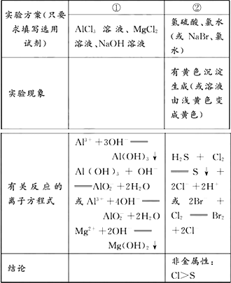 试剂:镁条、铝条、氯水、AlCl3溶液、MgCl2溶液、NaBr溶液、氢硫酸、水、NaOH溶液