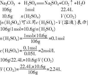 向10.6 g碳酸钠固体中加入一定浓度的硫酸溶液,当二者恰好完全反应时,消耗硫酸溶液的体积是50 mL.计算原硫酸溶液中溶质的物质的量浓度及反应生成的二氧化碳气体的体积(标准状况).