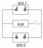 下图中滤纸Ⅰ上浸有饱和食盐水和酚酞,滤纸Ⅱ上浸有KMnO4溶液,接通电源一段时间后,发现a点附近变红,则下列说法中正确的是![]()