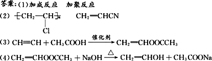 近年来,由于石油价格不断上涨,以煤为原料制备一些化工产品的前景又被看好.下图是以煤为原料生产聚氯乙烯(PVC)和人造羊毛的合成路线.