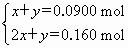 混合物中Na2SO4的质量= 设混合物中Na2CO3和NaHCO3的物质的量分别为x和y,反应中放出的CO2物质的量= 与Na2CO3、NaHCO3反应的盐酸的物质的量为 0.250 L×1.00 mol·L-1-0.500 L×0.100 mol·L-1×2+0.0100 L×1.00 mol·L-1=0.160 mol 解得:x=0.0700 mol y=0.0200 mol Na2CO3质量=0.0700 mol×106 g·mol-1=7.42 g NaHCO3质量=0.0200 mol×84 g·mol-1=1.68 g 所以混合物中Na2CO3质量为7.42 g,NaHCO3质量为1.68 g. |
