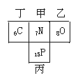 设甲元素原子的最外层电子数为x.由(1)(2)得: 4x=20 x=5 由于甲、乙两元素的原子序数之和等于丙元素的原子序数.所以甲为氮,乙为氧,丙为磷,丁为碳(如下图).