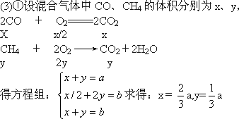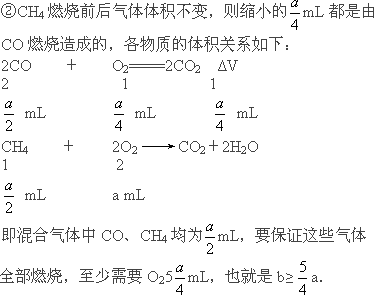 (3)120℃、101 kPa下,a mL由CO、CH4组成的混合气体在b mL O2中完全燃烧后恢复到原温度和压强.