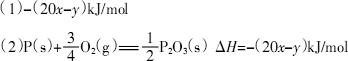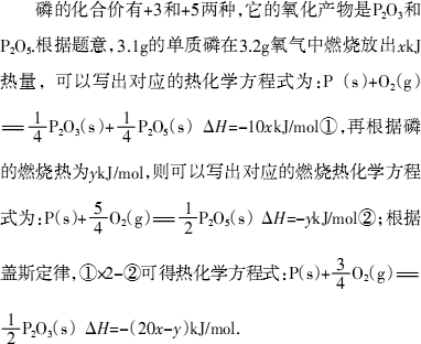 3.1 g的单质磷(P)在3.2 g氧气中燃烧,至反应物耗尽,并放出xkJ热量.(1)已知单质磷的燃烧热为ykJ/mol,则1 mol P与O2反应生成固态P2O3的反应热ΔH=________.