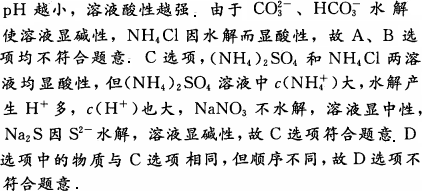物质的量浓度相同的下列溶液中,符合按pH由小到大顺序排列的是 | |