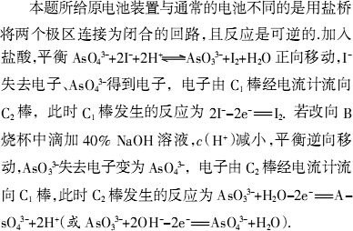 ¡¡¡¡´ð°¸£º (1)Á½´Î²Ù×÷¾ù·¢ÉúÔµç³Ø·´Ó¦£¬ËùÒÔ΢°²±íÖ¸Õë»á·¢Éúƫת¡¡¡¡ (2)ÓÉÓÚc(H+)µÄ¸Ä±ä£¬Ê¹»¯Ñ§Æ½ºâÏò²»Í¬·½ÏòÒÆ¶¯£¬Òò¶ø·¢Éú²»Í¬·½ÏòµÄµç³Ø·´Ó¦£¬²úÉú²»Í¬·½ÏòµÄµçÁ÷¡¡¡¡ (3)2I££2e£¡¡¡¡ (4)AsO33££«H2O£2e£¡¡¡¡½²Îö£º ¡¡¡¡ |