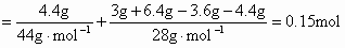 答案:(1)含氢原子0.4 mol,含碳原子0.15 mol. (2)该有机物的分子式为C3H8O 解析:(1)n(H)=2n(H2O)=0.4 mol(1分); n(C)=n(CO2)+n(CO) (2)3 g A中,n(H)=0.4 mol,n(C)=0.15 mol,n(O)=2n(CO2)+n(CO)+n(H2O)-2n(O2)=2×0.1 mol+0.05 mol+0.2 mol-2×0.2 mol=0.05 mol;所以,n(C)∶n(H)∶n(O)=3∶8∶1;A的分子式为C3H8O. |