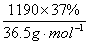 为了计算方便,先将浓盐酸换算成物质的量浓度,然后再根据溶液加水稀释前后,所含溶质(HCl)的物质的量不变就可以列式求出。 题中浓盐酸的密度为1.19g·cm-3,那么1L浓盐酸为 1.19g·cm-3×1000cm3=1190