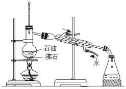 将下图所列仪器组装为一套实验室蒸馏石油的装置,并进行蒸馏,得到汽油和煤油. ![]()