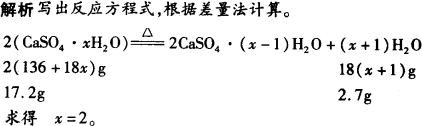 17.2 g CaSO4·xH2O转变成2CaSO4·(x-1)H2O时,质量减少2.7 g,则x值是( ). | |