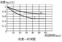 (4)实验4只改变温度,其它条件不变。请在答题卡的相应位置画出实验1和实验4的“浓度—时间”关系曲线。