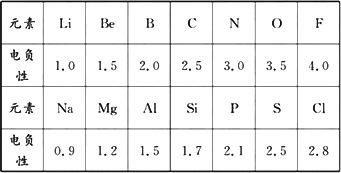 (1)根据上表给出的数据,可推知元素的电负性具有的变化规律是________;