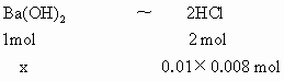 解:设与盐酸反应的氢氧化钡物质的量为x x=4× 吸收二氧化碳的氢氧化钡为0.02×0.05 mol-5×4× 所以二氧化碳在空气中的体积分数= =0.18% |