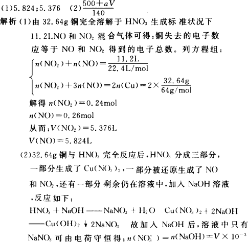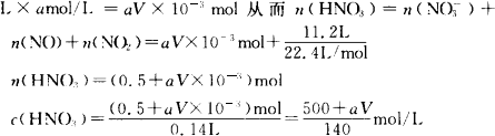 (2)待产生的气体全部释放后,向溶液中加入V mL a mol/L的NaOH溶液,恰好使溶液中的Cu2+全部转化为沉淀,则原硝酸溶液的浓度为_______mol/L.
