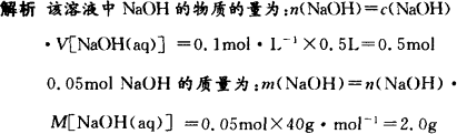 答案:配制500 mL 0.1 mol·L-1NaOH溶液需NaOH的质量是2.0 g. |