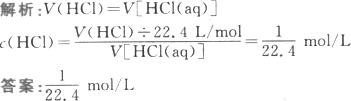 HCl与H2O形成的喷泉,其溶液中溶质的物质的量浓度为多少?