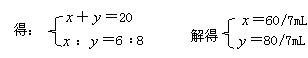 常温常压下,将盛有20 mL NO2和O2的混合气体的大试管倒立在水槽中,水面上升至一定位置后不再变化,此时还有3 mL气体,则原混合气体中的NO2的体积是 | |