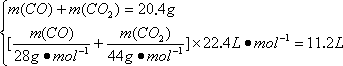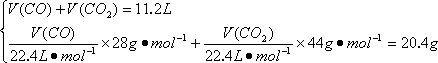 在标准状况下,11.2 L CO和CO2混合气体质量为20.4 g,求混合气体中CO和CO2的体积比和质量比.