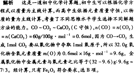 用足量的CO还原32.0 g某种氧化物,将生成的气体通入足量澄清石灰水中,得到60 g沉淀,则该氧化物是( ). | |