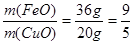 (2)实验中从第③步所得固体D的质量为32g,溶液E中只含有一种金属离子,气体F在标准状况下的体积为5.6L。试计算取用的每份X中FeO和CuO的质量比。