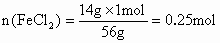 14gFe与足量稀盐酸混合充分反应,消耗多少克HCl?生成