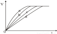 等质量的铁与过量的盐酸在不同的实验条件下进行反应,测定在不同时间t产生氢气体积v的数据,根据数据绘制得到下图,则曲线a所对应的实验组别是( )