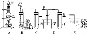 (3)B、D、E装置相连后,在B中盛装浓硝酸和铜片(放在有孔塑料板上),可制得并进行NO2有关实验.