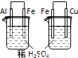 | A | 左烧杯中铁表面有气泡,右边烧杯中铜表面有气泡 | 活动性:Al>Fe>Cu |