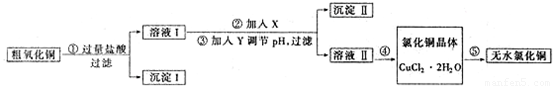 某化学小组用粗氧化铜(含少量氧化亚铁及不溶于酸的杂质)制取无水氯化铜,其实验流程如下所示: