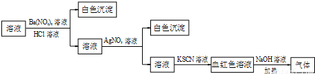| D | 向X溶液中先滴加稀硝酸,在滴加Ba(NO)2溶液,出现白色沉淀 | 溶液X中一定含有SO |