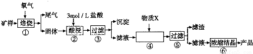 某矿样含有大量的CuS、少量铁的氧化物及少量其它不溶于酸的杂质.某化学课外小组设计以下流程,以该矿样为原料生产CuCl2?2H2O晶体.
