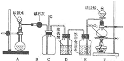 以下装置探究氯气与氨气之间的反应,其A、F分别为氨气和氯气的发生装置,C为纯净干燥的氯气与氨气反应的装置.请回答下列问题: