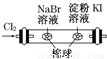 | A | 左边棉球变为橙色,右边棉球变为蓝色 | 氧化性:Cl2>Br2>I2 | |