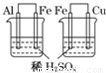 | B | 左边烧杯中铁表面有气泡,右边烧杯中铜表面有气泡 | 活动性:Al>Fe>Cu | |