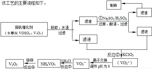 随着材料科学的发展,金属钒及其化合物得到了越来越广泛的应用,并被誉为“合金的维生素”.为回收利用含钒催化剂(含有V2O5、VOSO4及不溶性残渣),科研人员最新研制了一种离子交换法回收钒的新工艺,回收率达91.7%以上.部分含钒物质在水中的溶解性如下表所示: