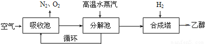 吸收池中盛有饱和碳酸钾溶液,把含有二氧化碳的空气吹入吸收池中,吸收池中反应液进入分解池后,向分解池中通入高温水蒸汽,把二氧化碳从溶液中提取出来,在合成塔中和氢气经化学反应使之变为可再生燃料乙醇. 回答下列问题: