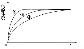 (4)实验③、④、⑤中,测得生成氧气的体积随时间变化的关系如图.