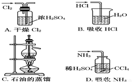 用下面实验装置完成对应的实验(部分仪器已省略)能达到实验目的且不会发生倒吸的是