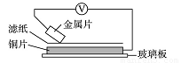 将洁净的金属片甲、乙、丙、丁分别放置在浸有某种盐溶液的滤纸上面并压紧(如下图所示)。在每次实验时,记录电压表指针的移动方向和电压表的读数如下表:(已知构成两电极的金属其金属活动性相差越大,电压表的读数越大)依据记录数据判断,下列结论中正确的是