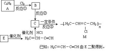 工业上可由有机化工原料A或E制得橡胶M,它是理想的电线电缆材料,其合成路线如下图所示。(二聚指两个相同的分子聚合为一个分子的过程,三聚、四聚同理)
