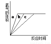 等质量的铝粉与足量盐酸在不同条件下反应,产生H2的体积与反应时间关系如下图所示,则图中曲线a、b、c分别对应表中的实验组别是( )