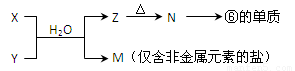 (6)由表中元素形成的常见物质X、Y、Z、M、N可发生以下反应: