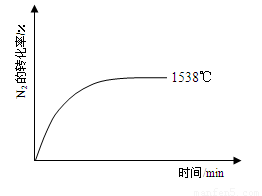 ②其他条件相同时,在上述三个温度下分别发生该反应。1538℃时,N2的转化率随时间变化如右图所示,请补充完成1760℃、2404℃时N2的转化率随时间变化的示意图。