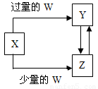 已知X、Y、Z、W均为中学化学中常见的单质或化合物,它们之间的转化关系如图所示(部分产物已略去)。则W、X不可能是( )