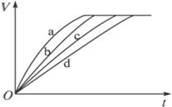 等质量的铁与过量的盐酸在不同的实验条件下进行反应,测定在不同时间t产生氢气体积V的数据,根据数据绘制得到下图,则曲线a、b、c、d所对应的实验组别是