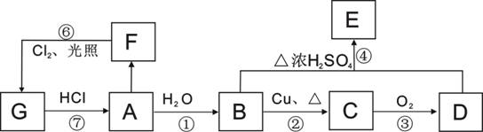(13分)A、B、C、D、E、F、G均为有机物,其中A 常用来衡量一个国家石油化工发展水平的标志性物质,它们之间有如下转化关系。