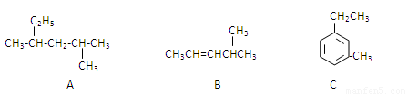 (3)有A、B、C三种烃,它们的结构简式如下图所示: